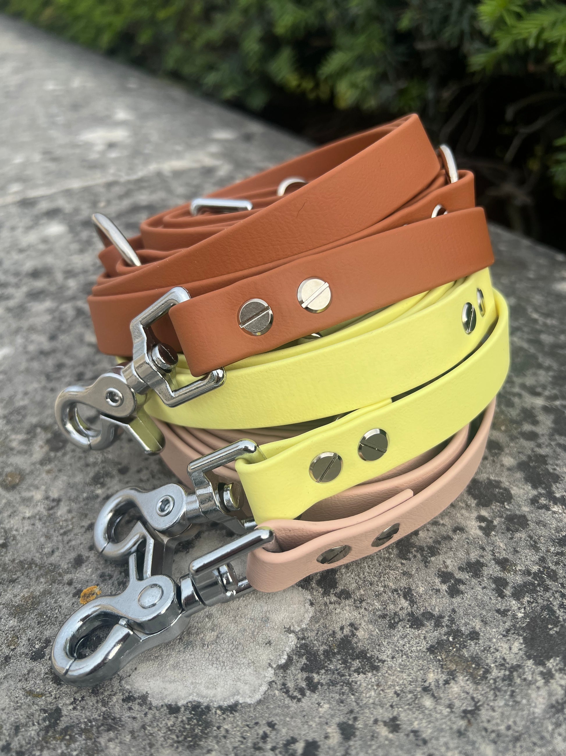 Découvrez la laisse St-Germain longue, un accessoire polyvalent et élégant pour vos balades avec votre chien. Entièrement fabriquée en Biothane et équipée d'une bouclerie en laiton, cette laisse est conçue pour offrir à la fois durabilité et style.