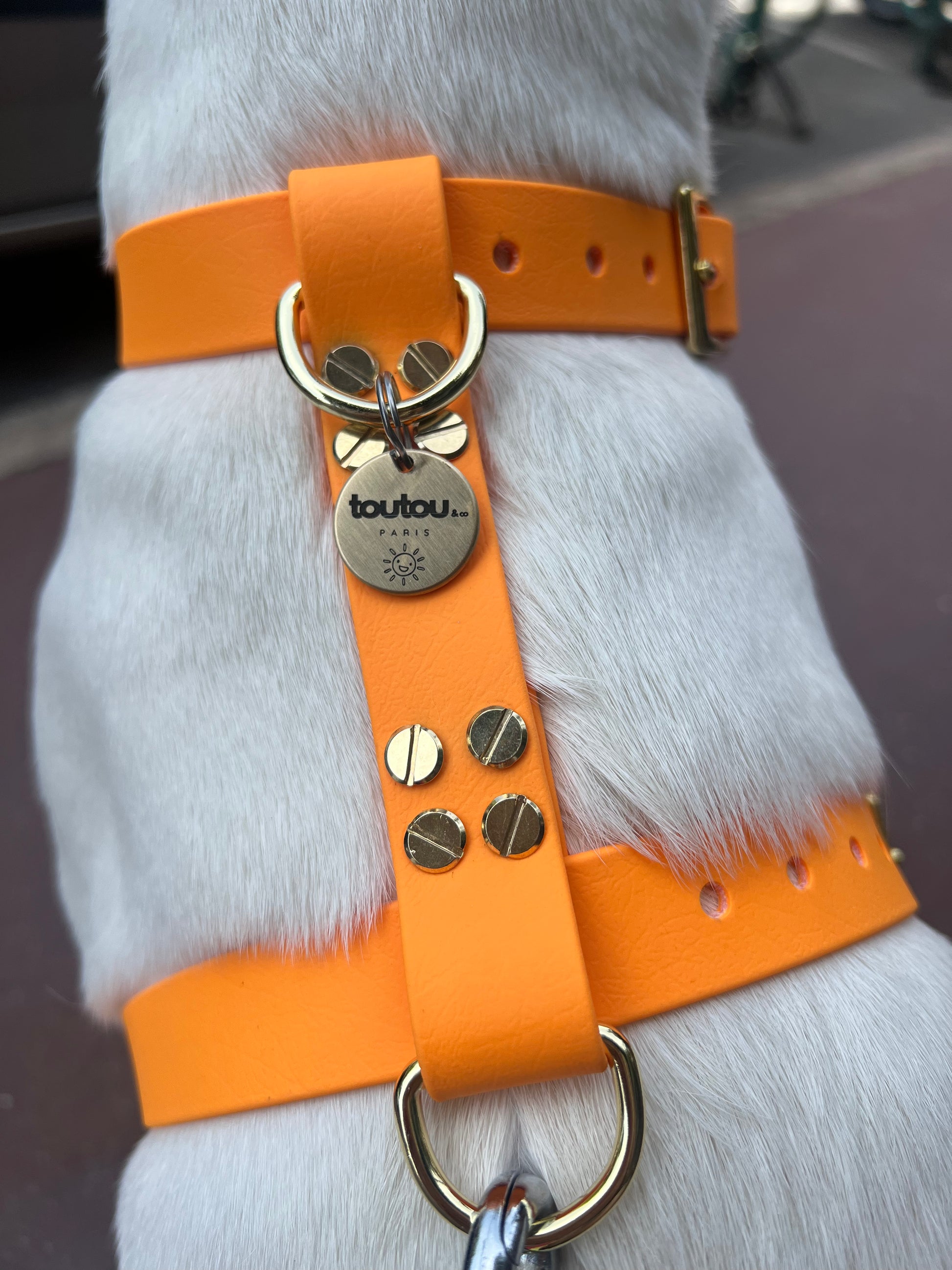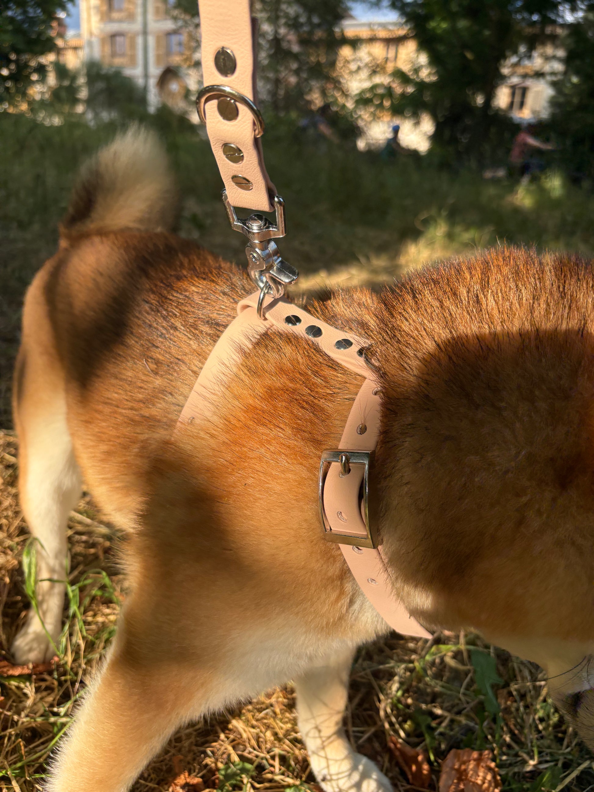 Offrez à votre chien le harnais en Biothane de Maison Toutou&co Paris et profitez de promenades sereines et stylées grâce à un produit de haute qualité, fabriqué avec soin dans notre atelier parisien.